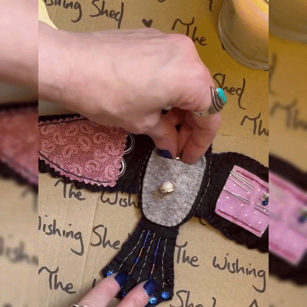 Say hello to Luna, your enchanting sewing sidekick born from a fallen piece of the moon! By day she tucks her midnight-blue felt wings close, whispering secrets of starry nights 🌌, but at your gentle touch her wings unfurl to reveal the treasures every maker cherishes — silver scissors, memory-holding needles, and threads that hum with endless possibility. ✨🧵