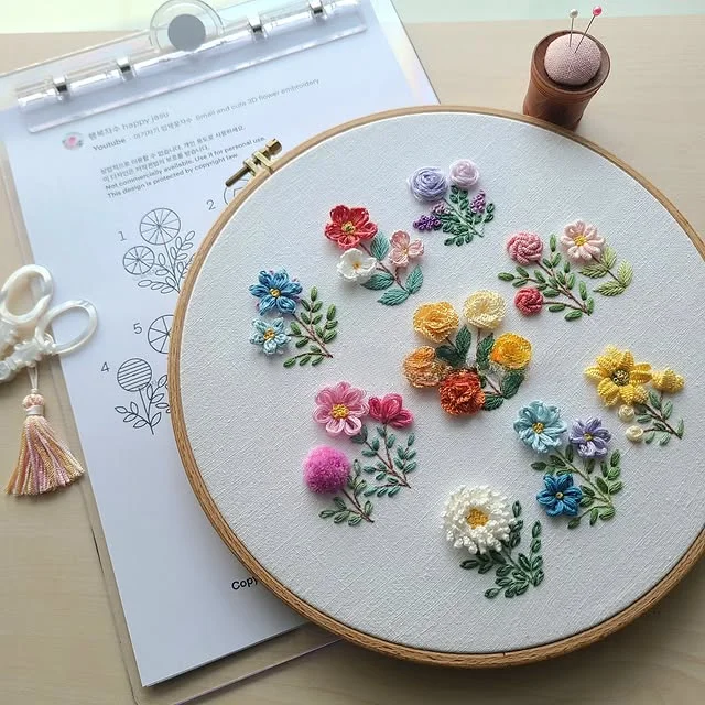 - Adorable 3D Flower Embroidery Kit