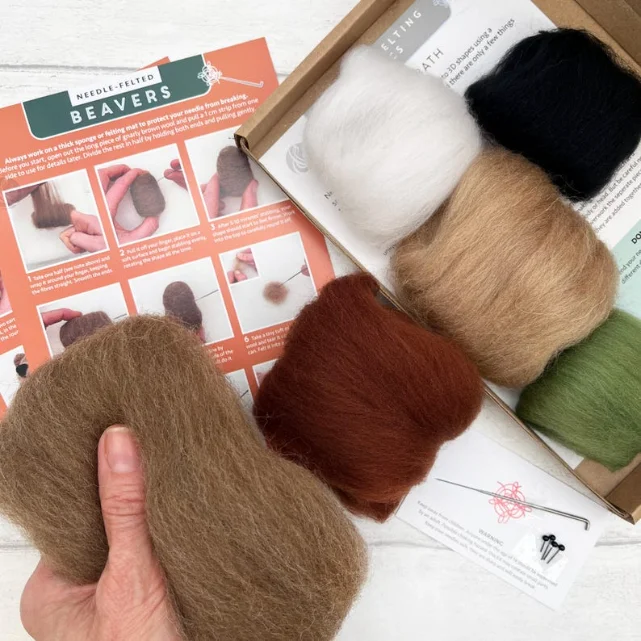Never tried needle felting before? No problem. This kit is designed especially for total beginners and curious creators. You’ll learn how to shape soft wool fibres into simple forms using a special barbed felting needle, then gradually transform those shapes into two adorable beavers. It’s surprisingly relaxing—and just a little bit magical.