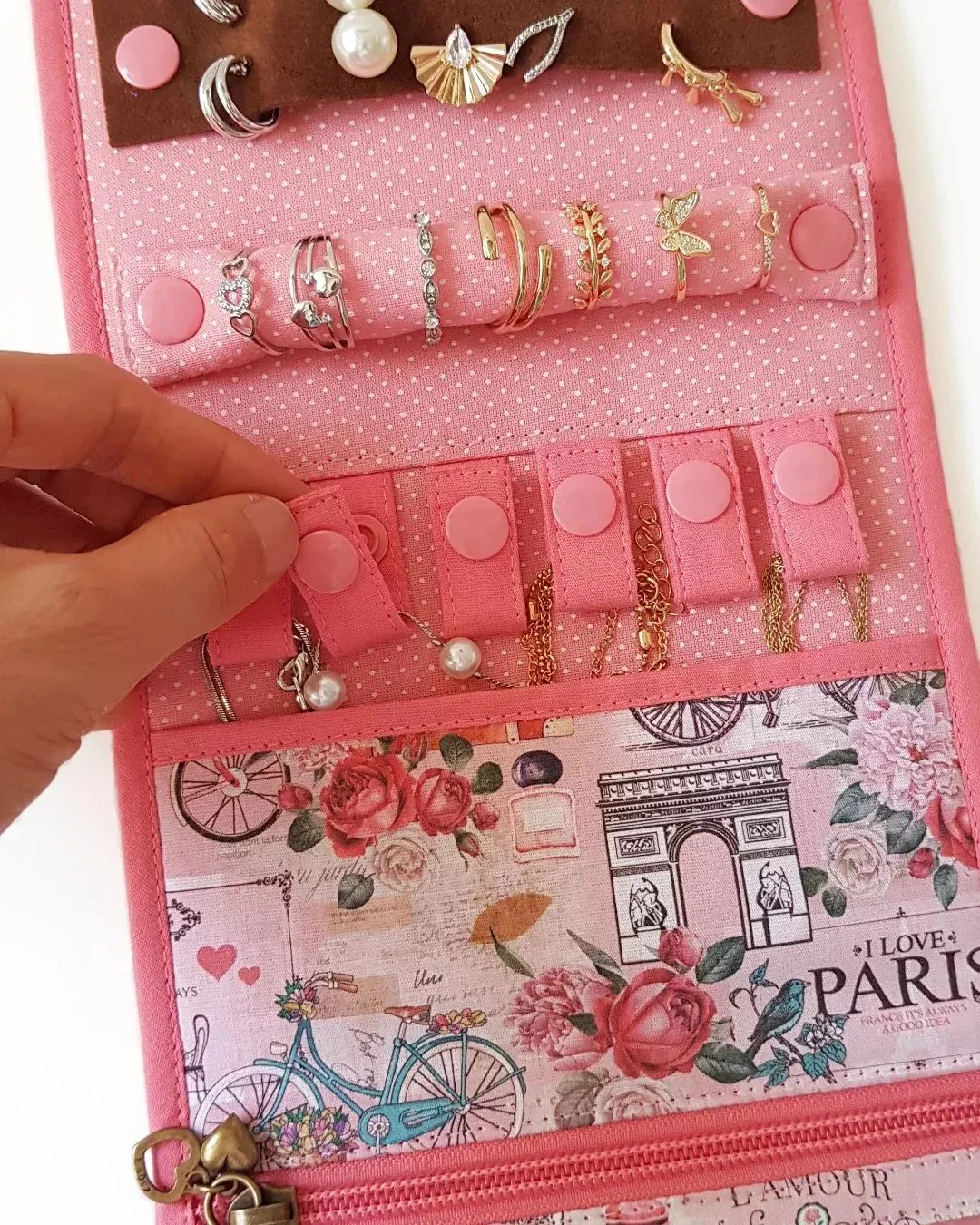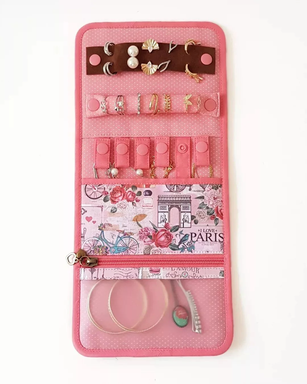 And speaking of rings, we've got you covered! Our travel jewelry storage bag templates also feature ring holders, where you can safely store your most treasured bling. They're snug and secure, so you can rest easy knowing that your rings are always within reach and won't accidentally slip away. Plus, it adds a touch of elegance to your storage routine!