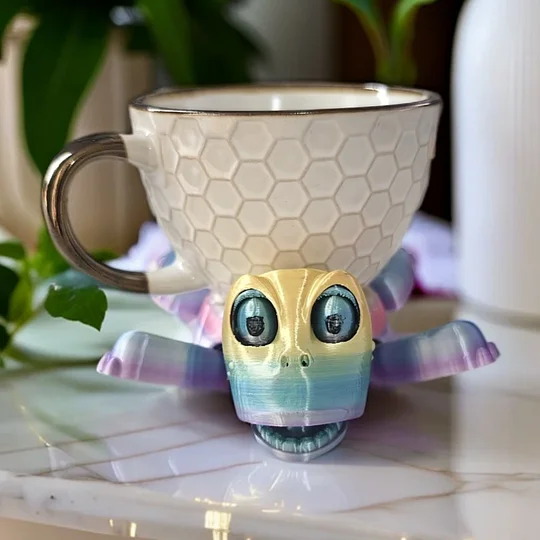 3D printed from heat and water-resistant PETG plastic, this little guy can handle your hottest coffee and your coldest cocktails. Just give him a quick wipe or hand wash when needed—though he’s not a fan of dishwashers (too much spa time, apparently).