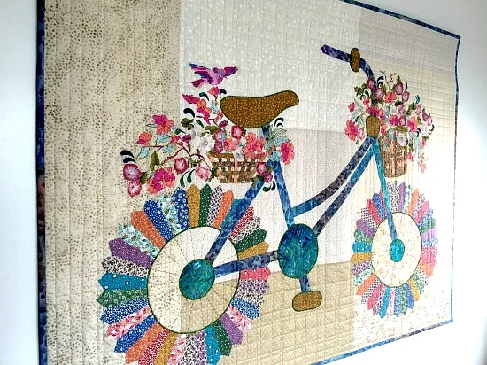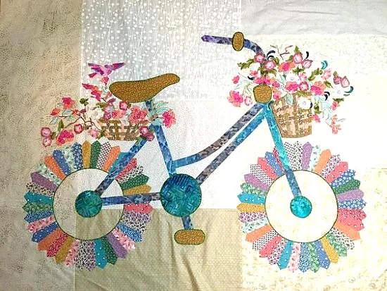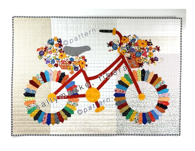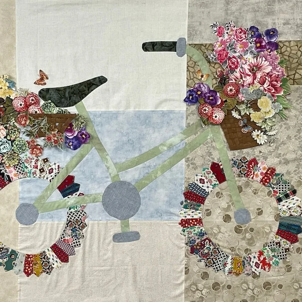 The pattern comes with everything you need—templates for the bicycle, flower baskets, and all the little details that make your quilt truly enchanting.