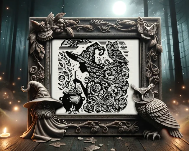 With just one single thread color, you’ll bring to life a piece that’s both dramatic and mesmerizing. Perfect for gothic décor, witchy gifts, or simply embracing your spooky side year-round.